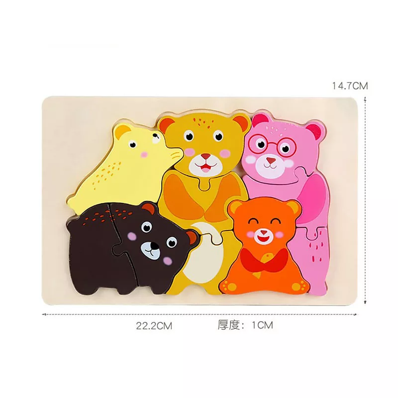 Rompecabezas educativo de madera de animales de dibujos animados para niños