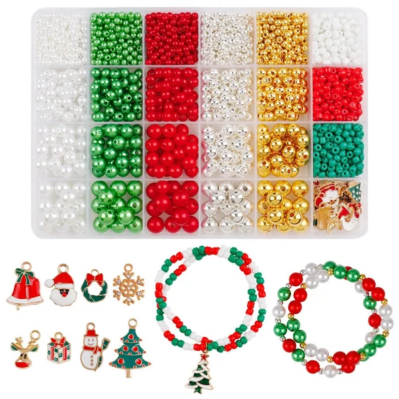 Si está buscando productos para sus compras navideñas, el juego de pulseras de bricolaje con cuentas navideñas debería estar en su lista. Es asequible, atractivo y temático: uno de los favoritos de los clientes. Muchos de nuestros compradores realizan pedidos de miles a la vez para tiendas de regalos, talleres de artesanía o reventa en línea.