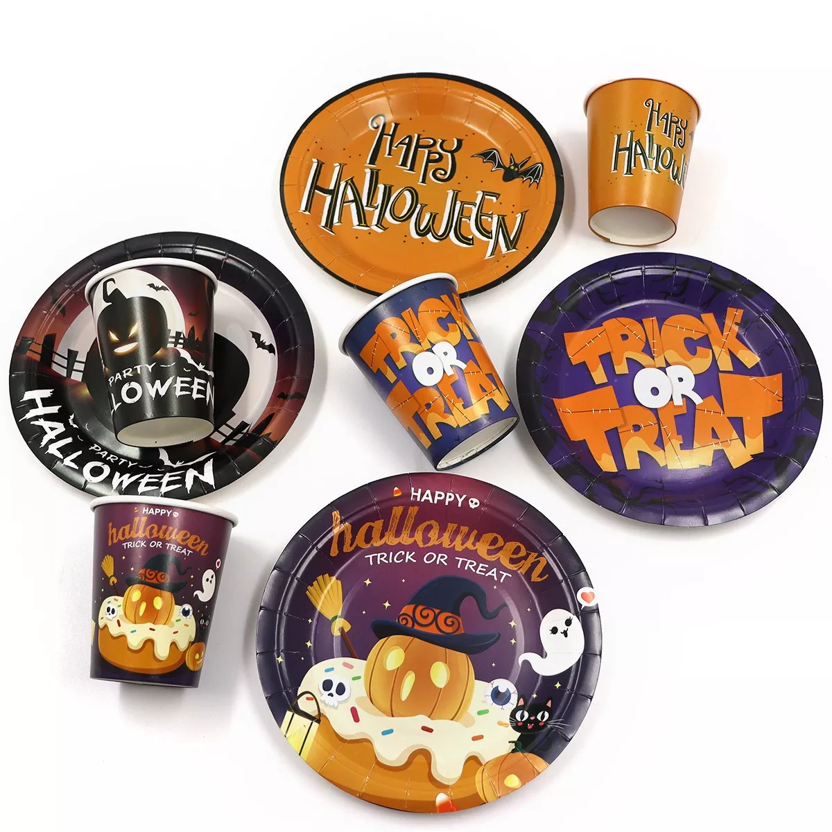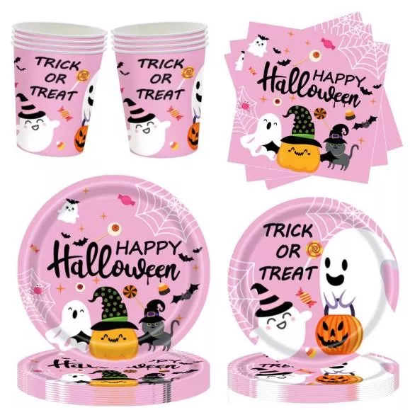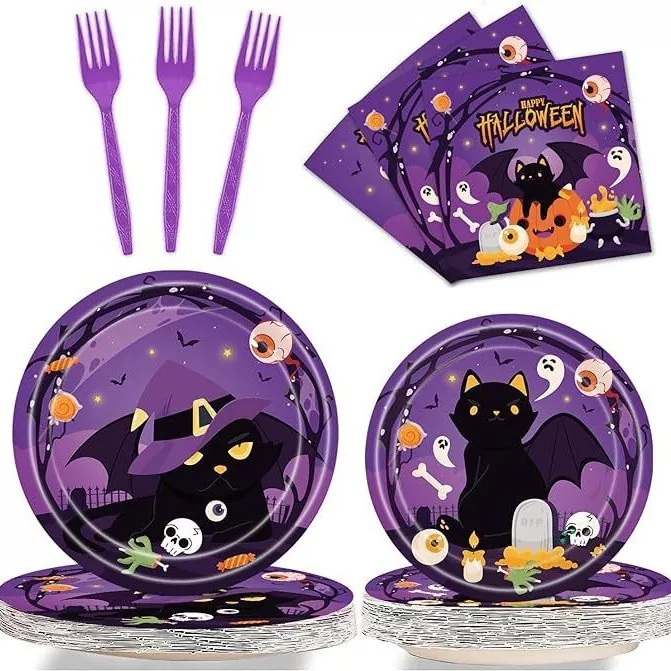 La ventaja más destacada de usar conjuntos de vajillas desechables de Halloween es su extrema conveniencia. Después de la fiesta, no hay necesidad de pasar mucho tiempo limpiando las pilas de la vajilla, simplemente tírela, ahorrando tiempo y esfuerzo. Al mismo tiempo, asegura una buena higiene. Cada huésped utiliza una vajilla nueva que está empaquetada individualmente, que es limpia e higiénica, y evita efectivamente el riesgo de infección cruzada. Desde una perspectiva de costos, este tipo de conjunto generalmente tiene una excelente efectividad rentable, y es especialmente económico cuando se compra a granel, que es mucho más bajo que el costo de alquilar o comprar una gran cantidad de vajilla ordinaria, y también evita la pérdida causada por el daño. Para el organizador, un conjunto de diseño uniforme puede mejorar significativamente el efecto visual general de la fiesta, crear un entorno temático inmersivo y mejorar la experiencia festiva.