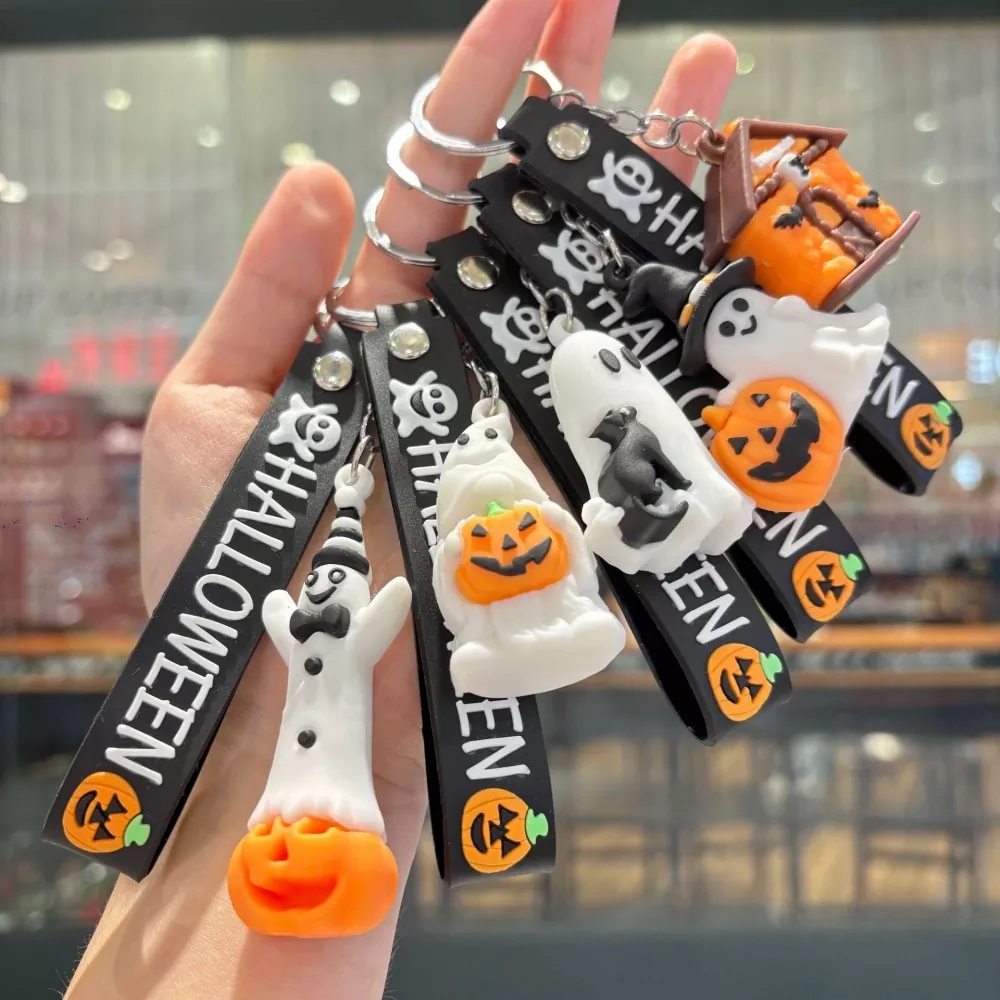 * **Serie linda y tonta:** ¿Demasiado aterrador? ¡Ningún problema! Tienen lindos fantasmas con ojos redondos; adorables gatitos con sombreros de mago; y calabazas regordetas de dibujos animados con expresiones adorables: las favoritas de los niños y las niñas lindas. **Departamento de Diseño Creativo:** Hay creaciones aún más sorprendentes, como calaveras que brillan en la oscuridad y brillan tenuemente en la oscuridad; llaveros hechos de resina epoxi, sellados con semillas de calabaza en miniatura o telarañas simuladas; e incluso aquellos con un pequeño mecanismo mecánico que saca colmillos de vampiro con solo presionar un botón.