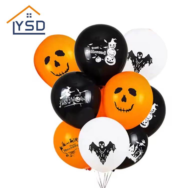 Los globos de látex de Halloween están disponibles en color negro, blanco, naranja y otros colores que coinciden con Halloween. Están hechos de látex natural. Se utilizan principalmente para decorar fiestas de Halloween y aumentar la atmósfera festiva. YSD es una fábrica especializada en la producción de suministros para fiestas. Los materiales utilizados en la producción de globos están todos en línea con los estándares.