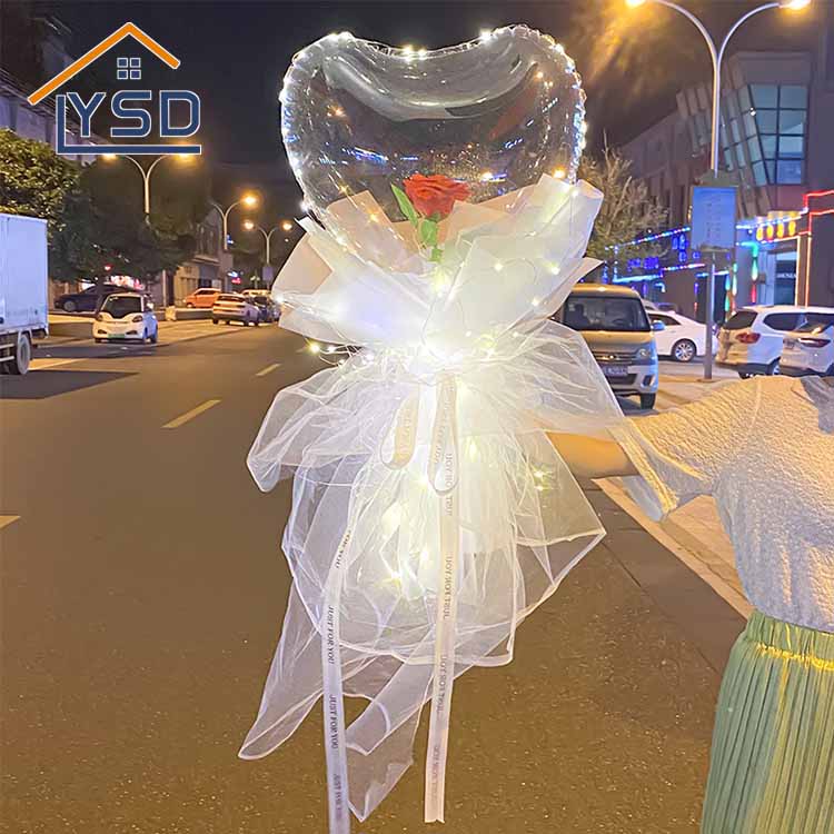 Otra forma es combinar los globos de bobo en forma de corazón en un set, y los materiales que generalmente se usan son la varilla y el remolque del globo de bobo, y la caja de batería. Simplemente combínelos y véndalos. Cuando caiga la noche, abra la caja de batería LED y obtendrá un hermoso globo Bobo en forma de corazón LED. Las cajas de batería LED vienen en muchos colores diferentes, como blanco, amarillo, azul, rojo, rosa, etc. Por supuesto, el más popular es el color.