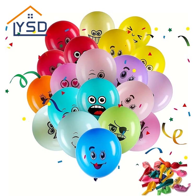 Los globos de látex de la cara sonriente están hechos de látex colorido, amigable con el medio ambiente, inodoro, biodegradable y elástico, y se usan ampliamente en fiestas, celebraciones, anuncios y otras ocasiones. YSD es un fabricante de globos profesionales, y brindamos servicios de personalización OEM.